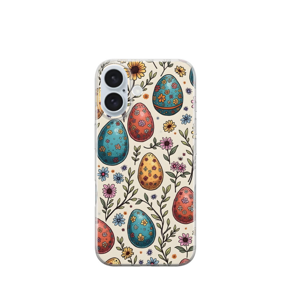 iPhone 16 Gummi Hülle Blumeneier - Blau / Gelb / Rot