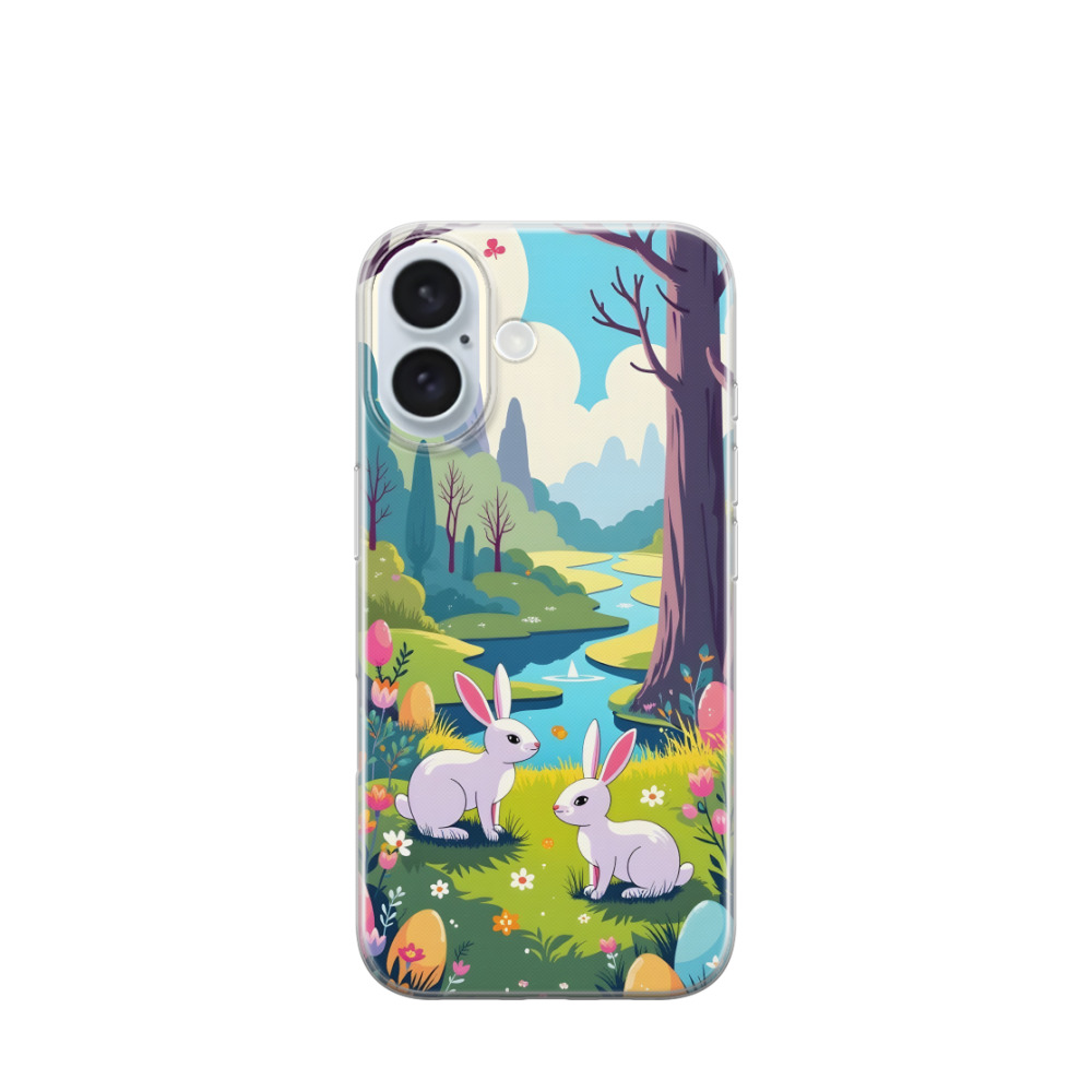 iPhone 16 Gummi Hülle Blütenpracht und Osterträume - Blau / Gelb / Rot