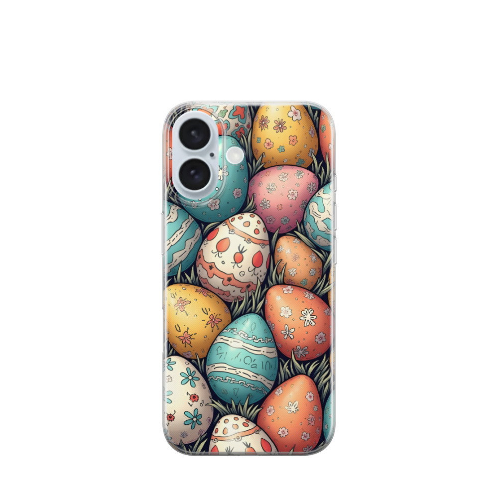 iPhone 16 Gummi Hülle Bunte Osterpracht - Blau