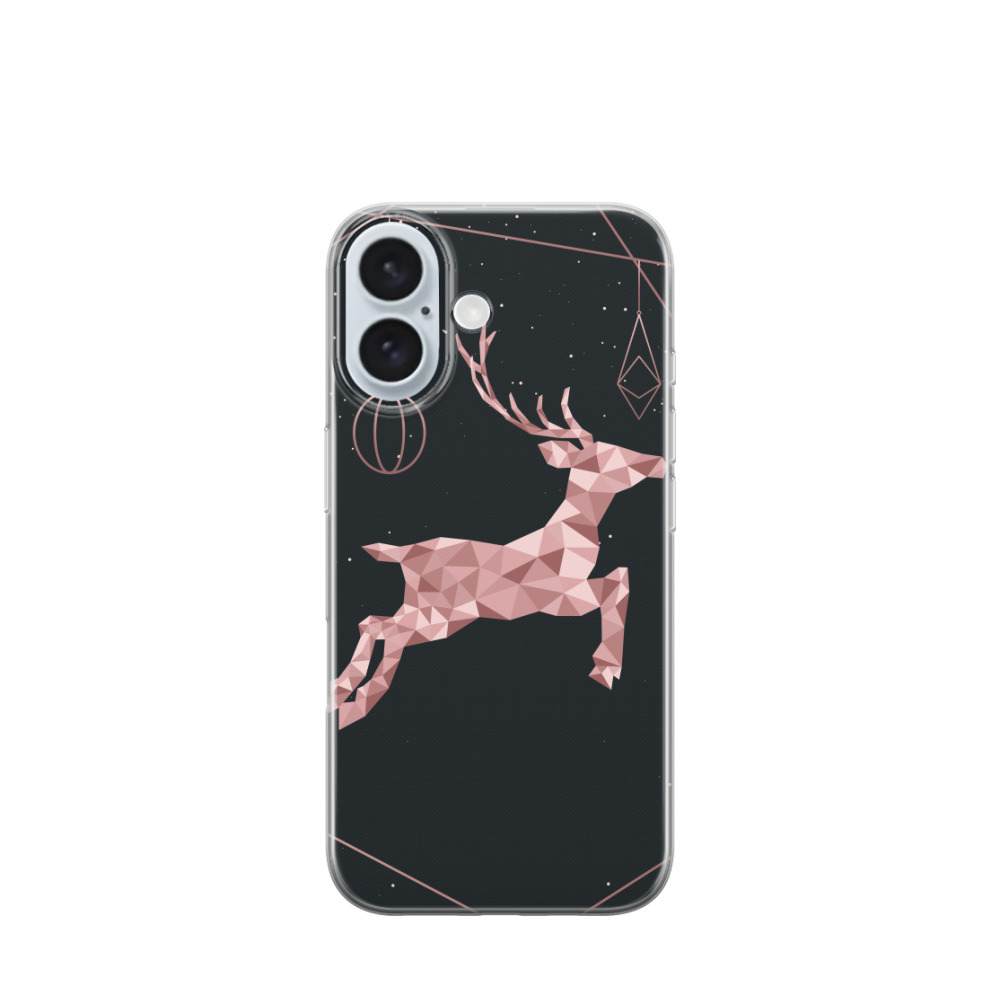 iPhone 16 Gummi Hülle Hirsch im Kosmos - Rosegold