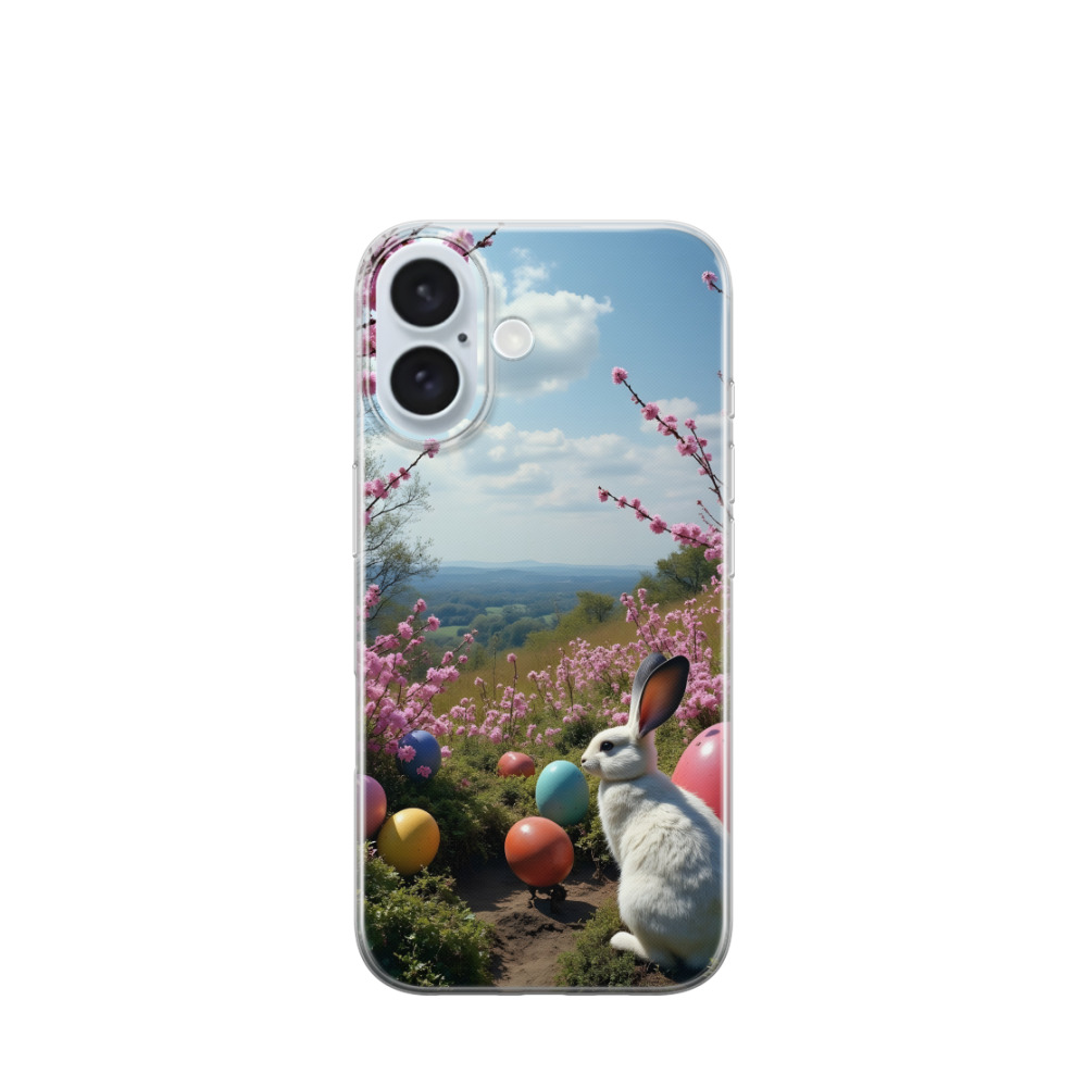iPhone 16 Gummi Hülle Osterhase im Frühling - Lila-Violett