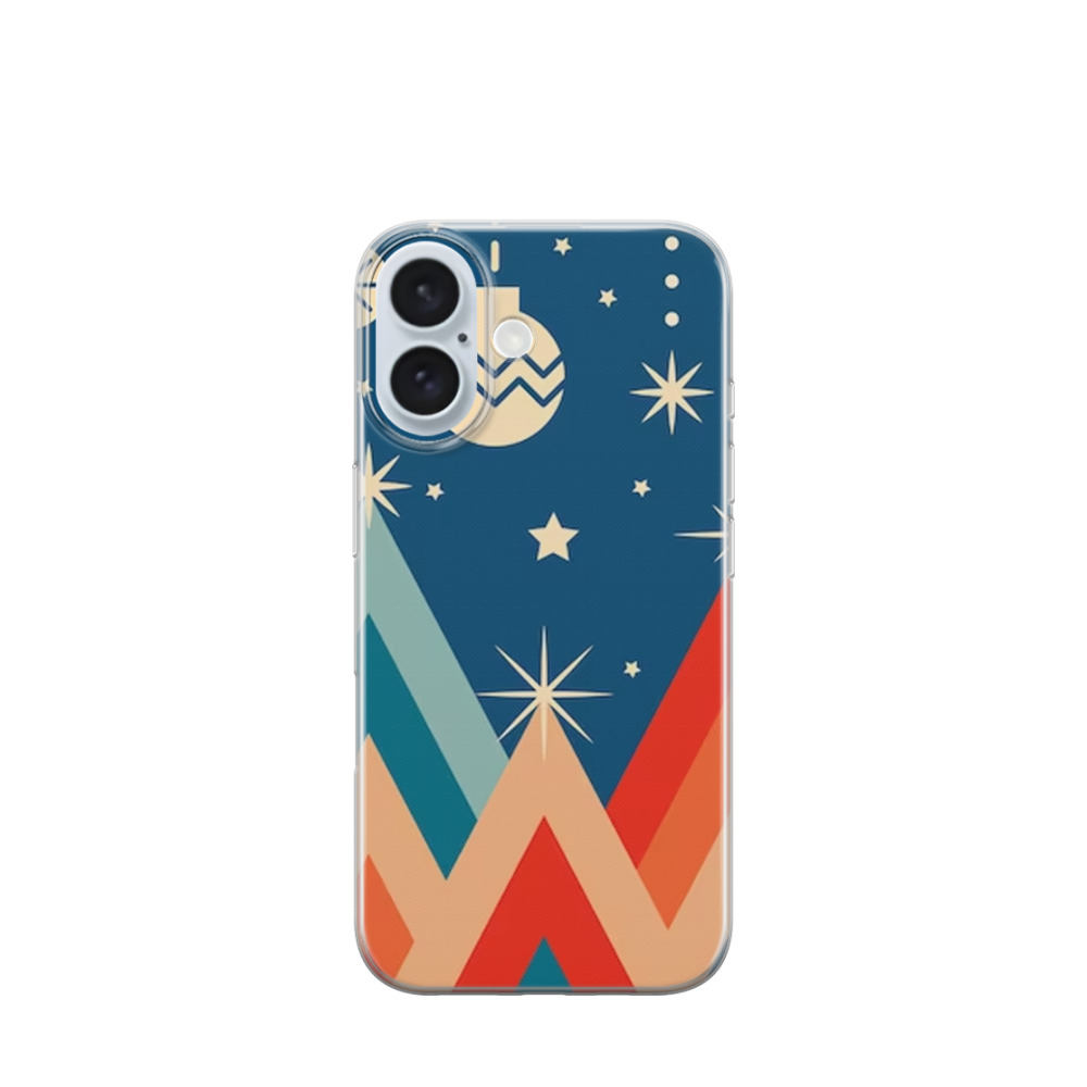 iPhone 16 Gummi Hülle Weihnachtsberge - Blau / Gelb / Rot