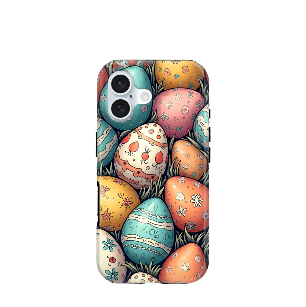 iPhone 16 Hybrid (Kunststoff / Gummi) Hülle Bunte Osterpracht - Blau / Gelb / Rot