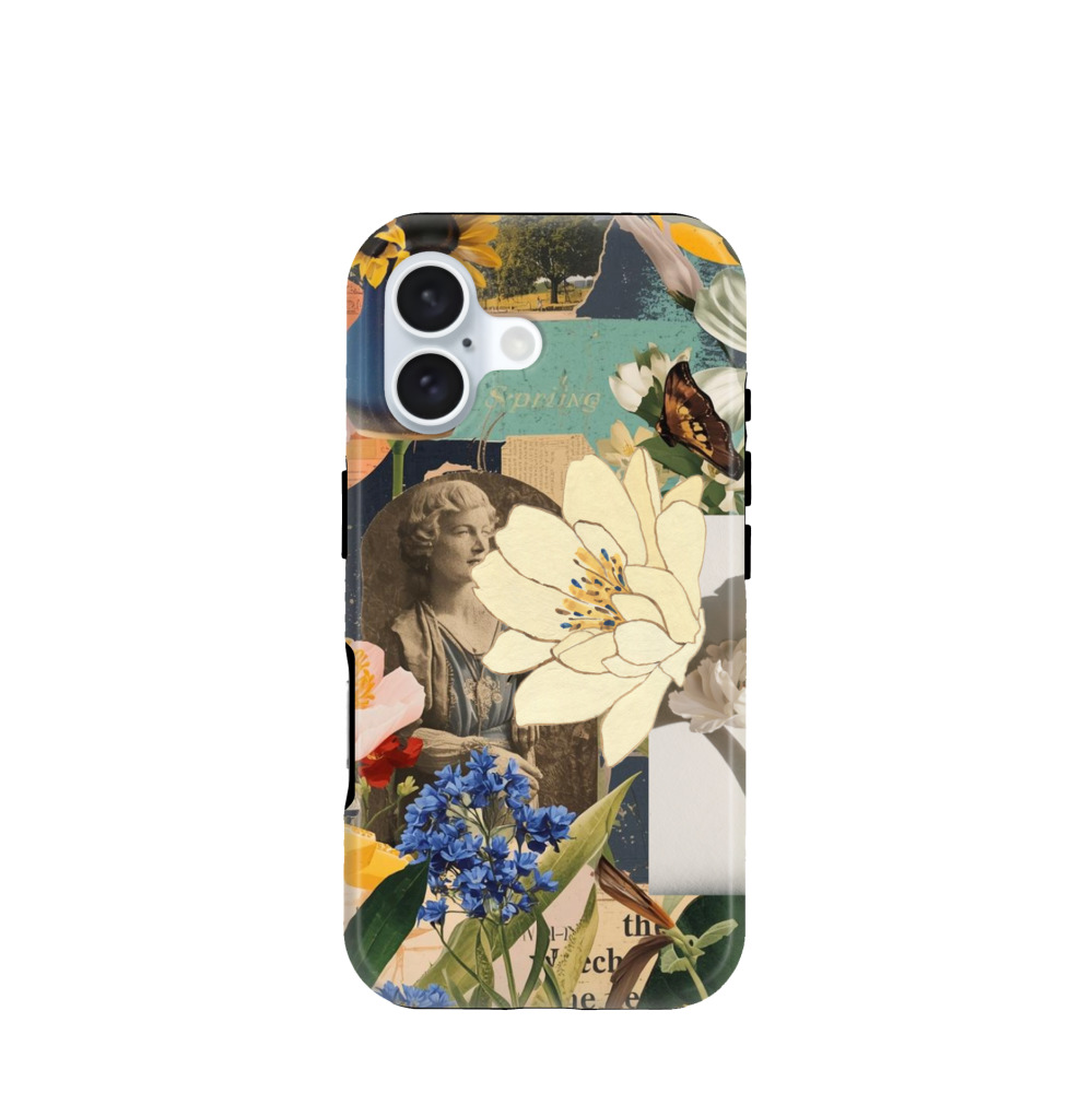 iPhone 16 Hybrid (Kunststoff / Gummi) Hülle Floral Collage - Versch. Farben