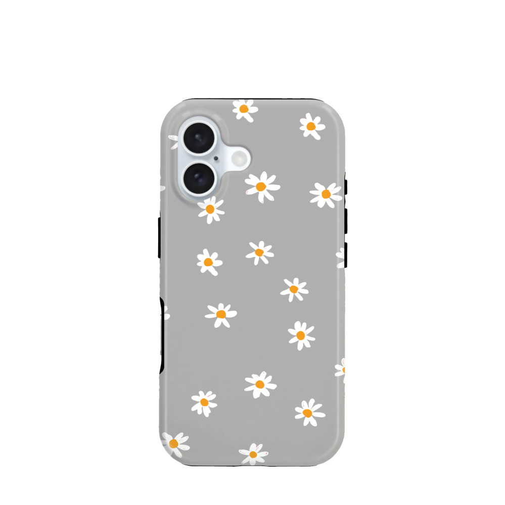 iPhone 16 Hybrid (Kunststoff / Gummi) Hülle Lily Dots - Grau