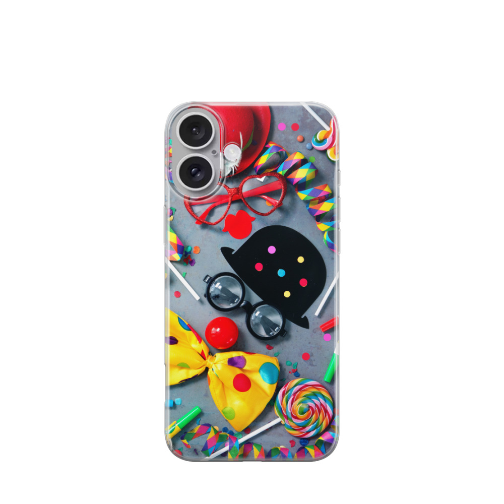 iPhone 16 Plus Gummi Hülle Clownskabarett - Versch. Farben