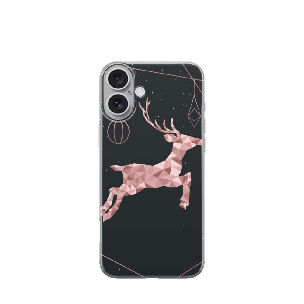 iPhone 16 Plus Gummi Hülle Hirsch im Kosmos - Rosegold