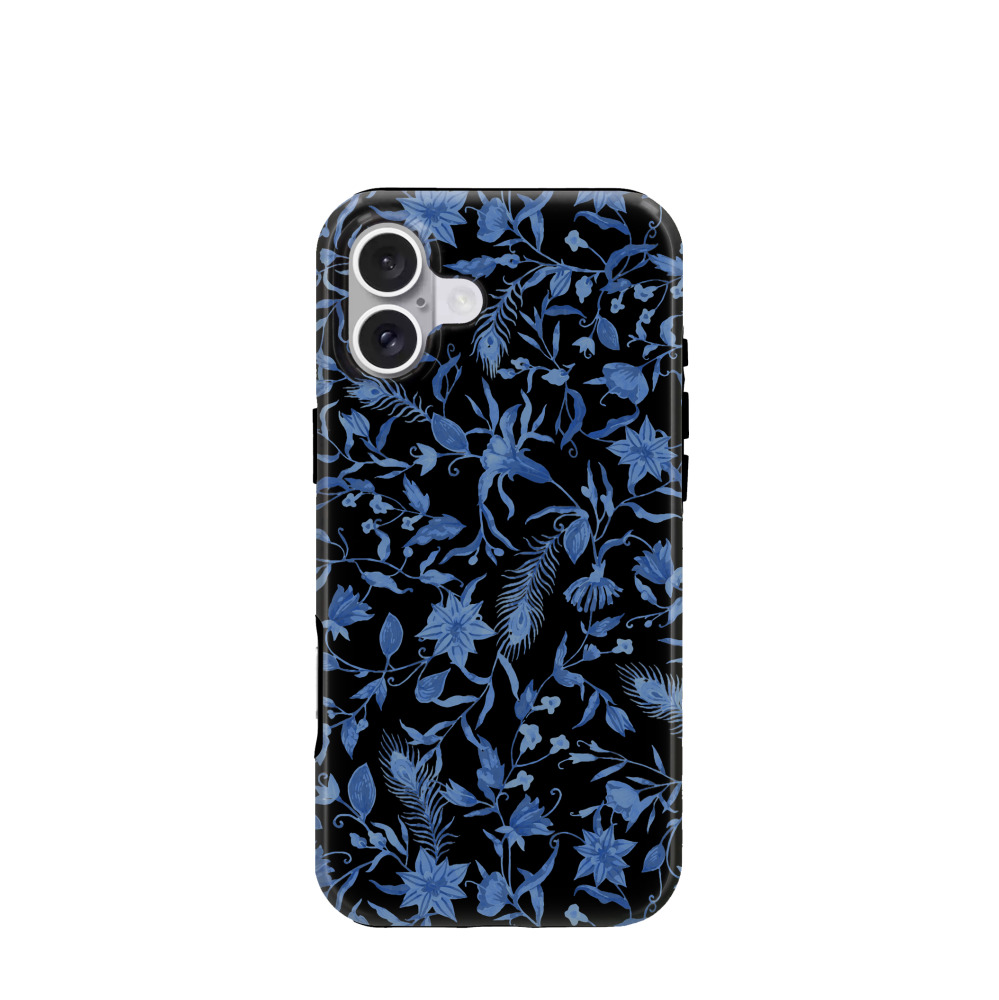 iPhone 16 Plus Hybrid (Kunststoff / Gummi) Hülle Midnight Wildflower - Schwarz