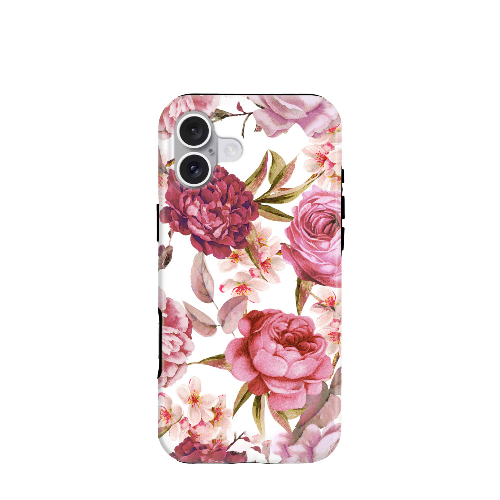 iPhone 16 Plus Hybrid (Kunststoff / Gummi) Hülle Wildrosen - Pink