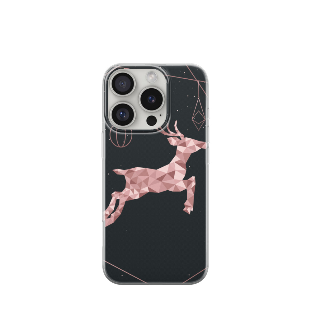 iPhone 16 Pro Gummi Hülle Hirsch im Kosmos - Rosegold
