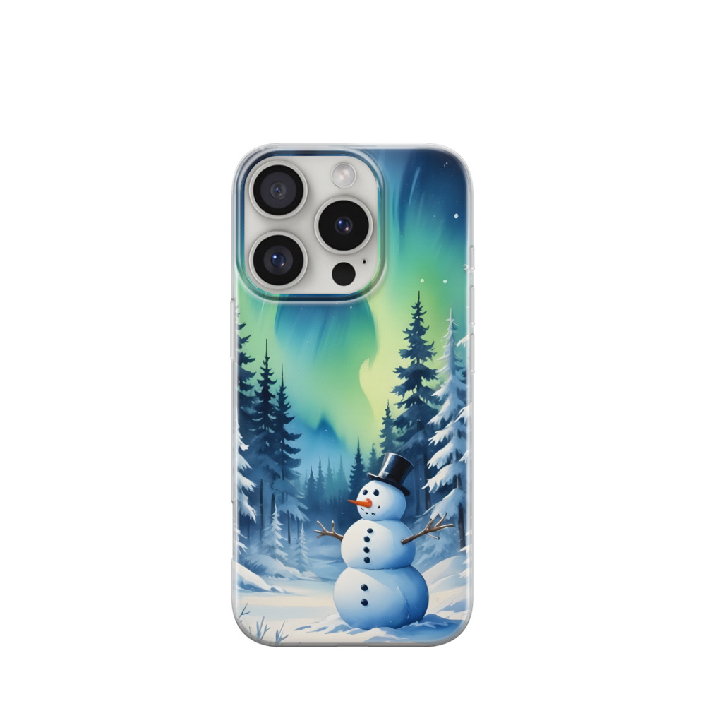 iPhone 16 Pro Gummi Hülle Nordlicht Schneemann - Türkis