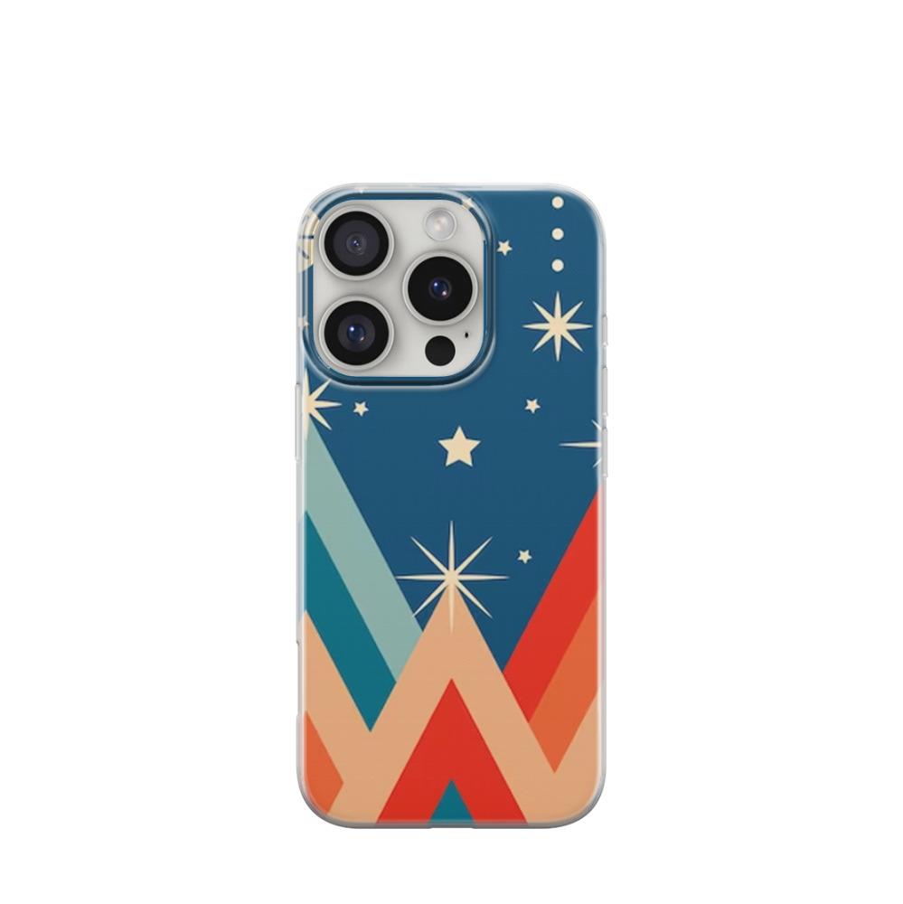 iPhone 16 Pro Gummi Hülle Weihnachtsberge - Blau / Gelb / Rot
