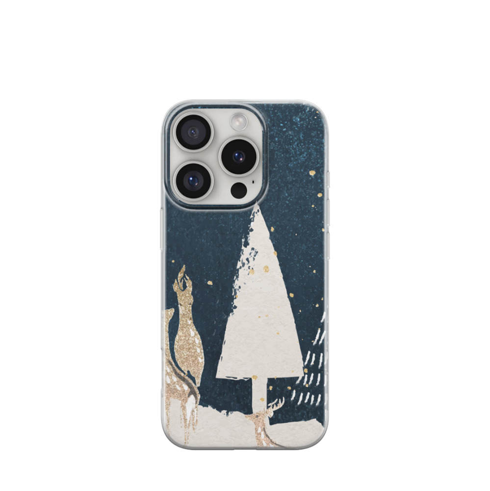 iPhone 16 Pro Gummi Hülle Winterlicher Hirsch - Blau