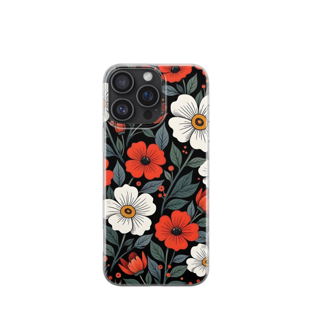 iPhone 16 Pro Max Gummi Hülle Blütentanz in Rot und Weiss - Versch. Farben