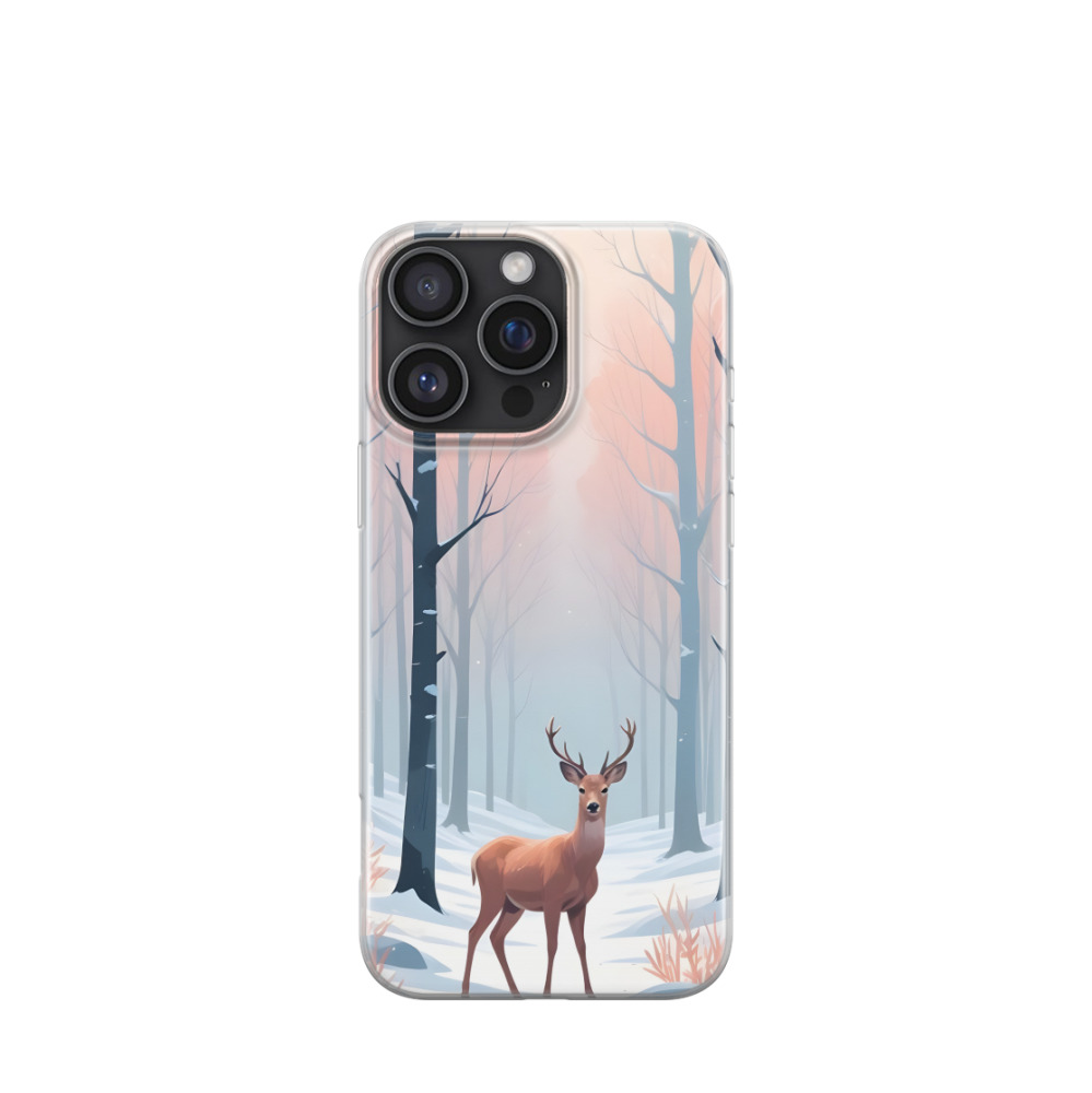 iPhone 16 Pro Max Gummi Hülle Hirsch im Morgennebel - Weiss