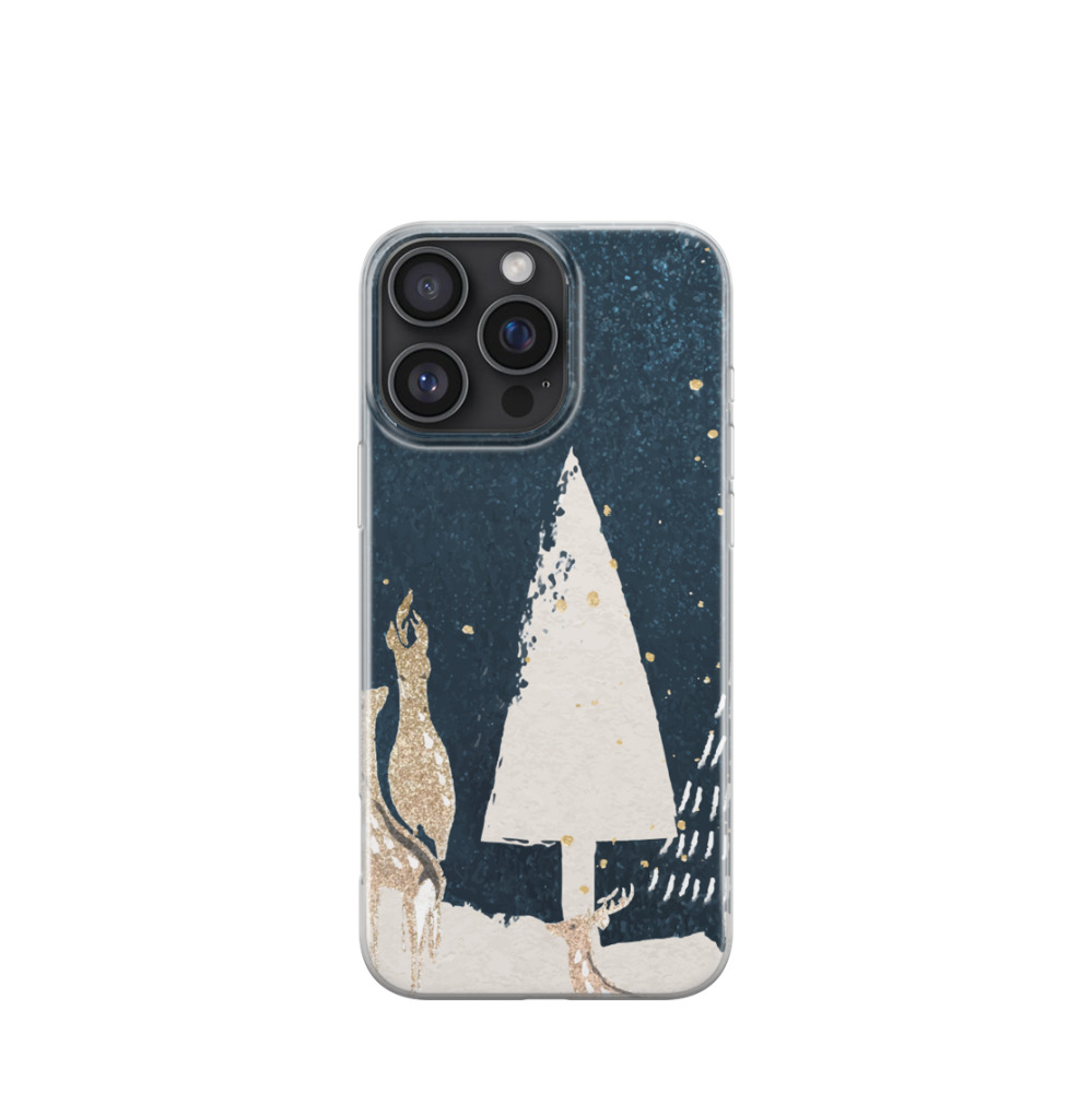 iPhone 16 Pro Max Gummi Hülle Winterlicher Hirsch - Blau