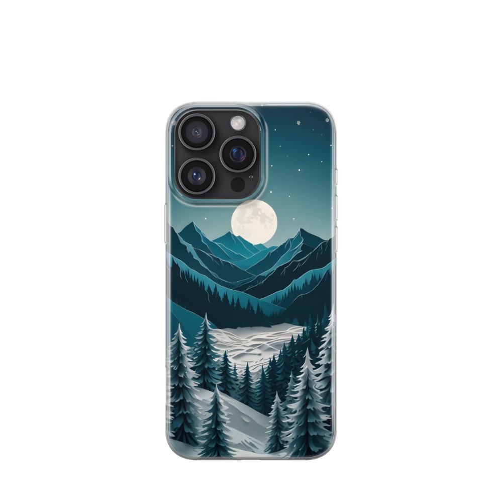 iPhone 16 Pro Max Gummi Hülle Winternacht in den Bergen - Schwarz