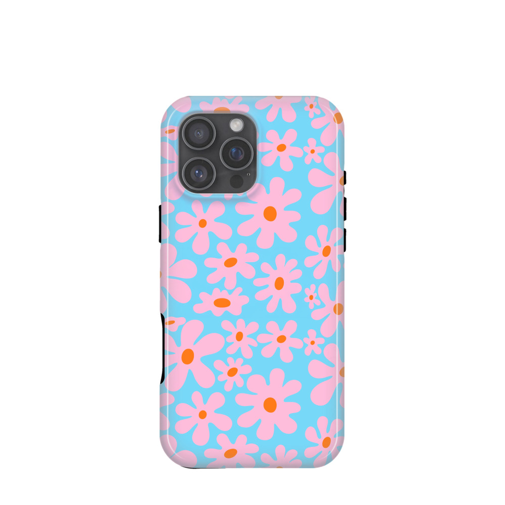 iPhone 16 Pro Max Hybrid (Kunststoff / Gummi) Hülle Soft Blue Petals - Rosa