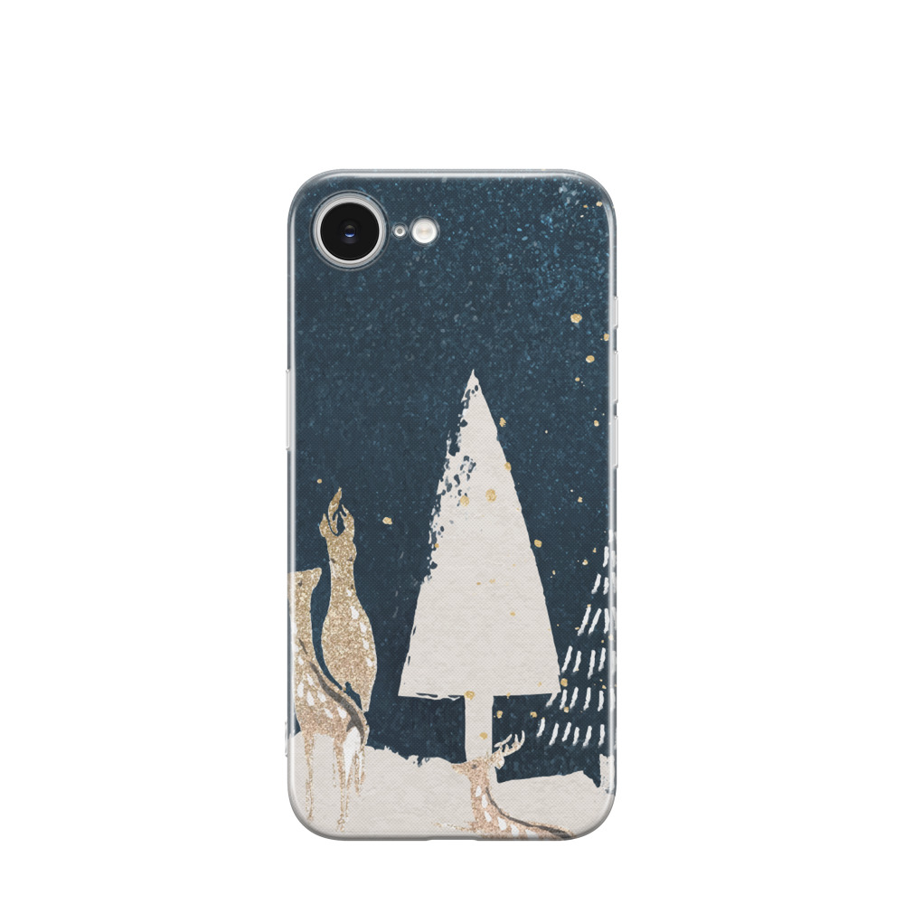 iPhone 16e Gummi Hülle Winterlicher Hirsch - Blau