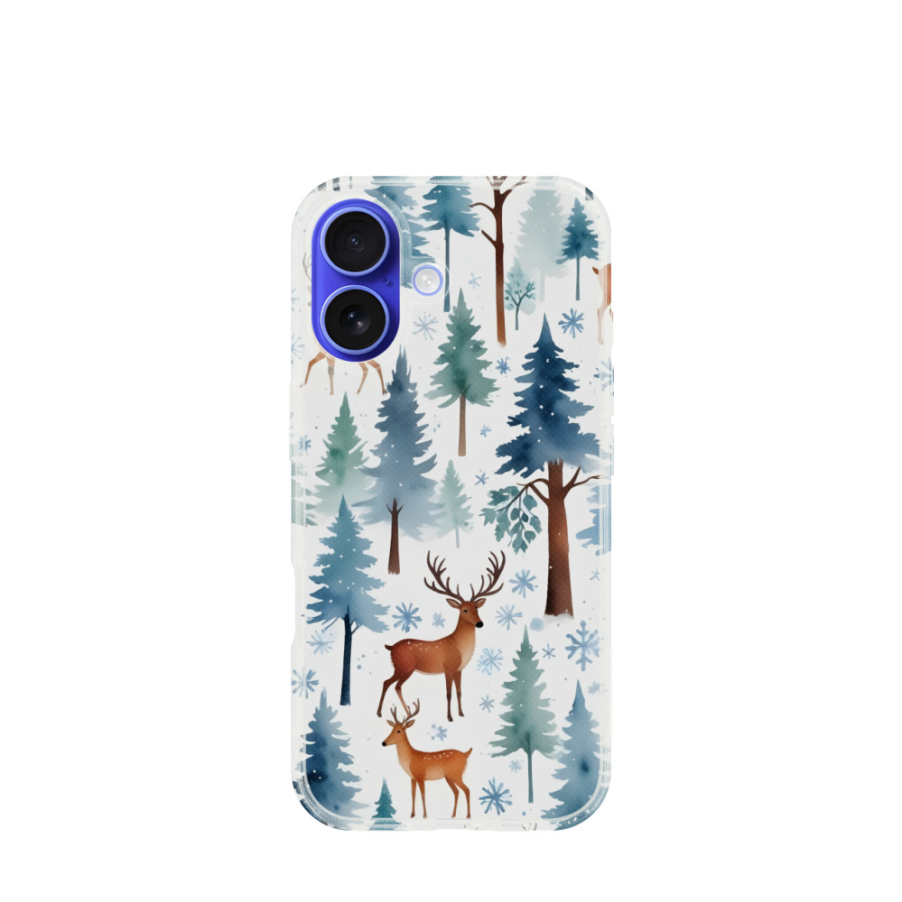 iPhone 17 Gummi Hülle Schneehirsche - Blau / Gelb / Rot