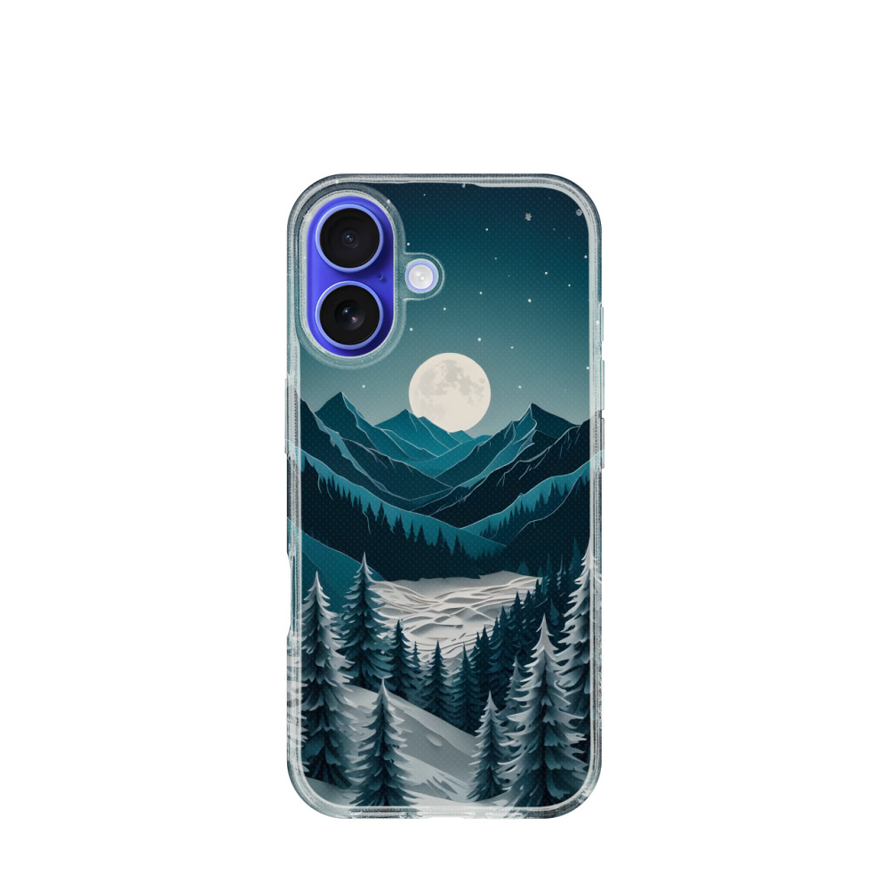 iPhone 17 Gummi Hülle Winternacht in den Bergen - Schwarz