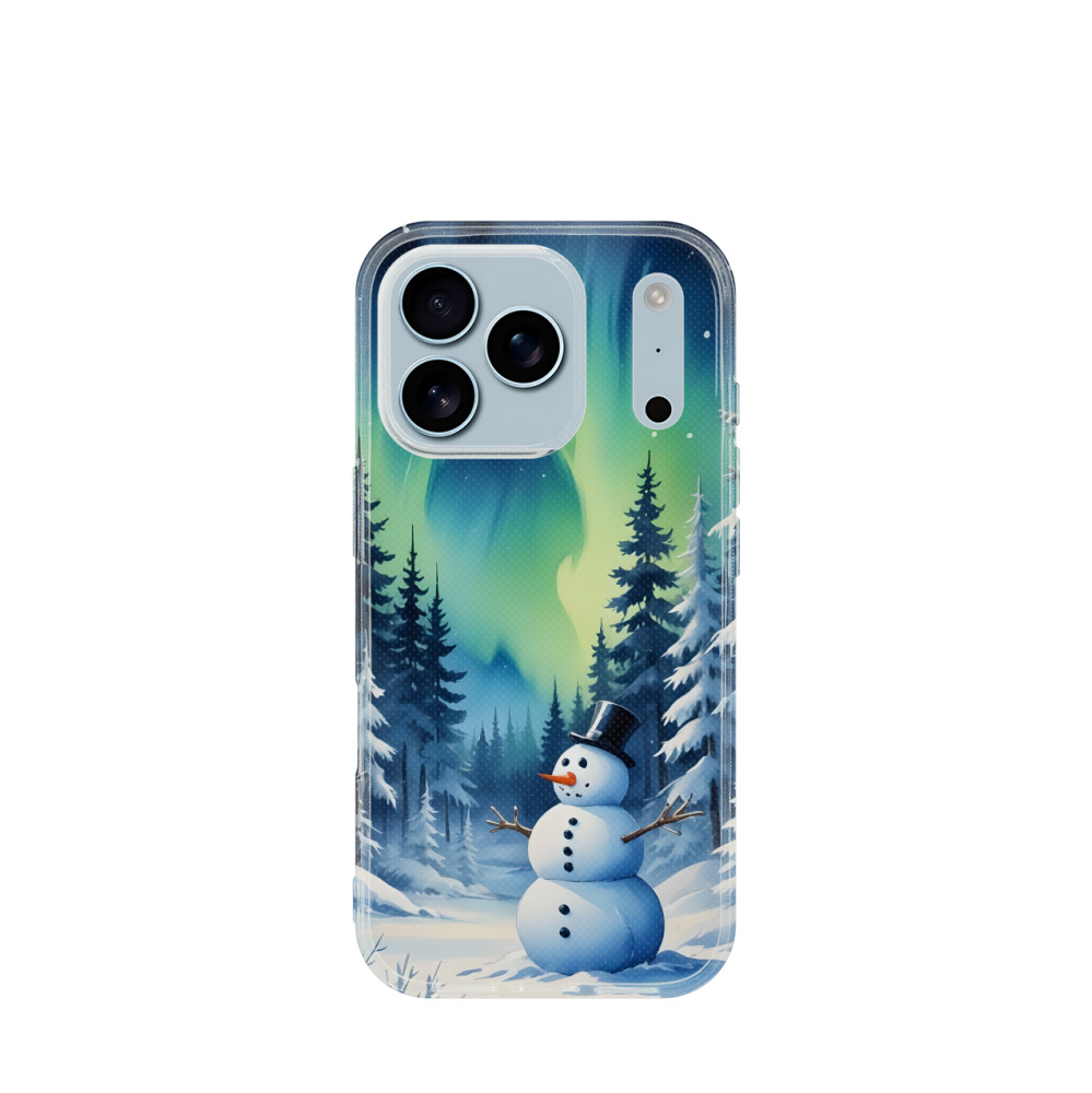 iPhone 17 Pro Gummi Hülle Nordlicht Schneemann - Türkis