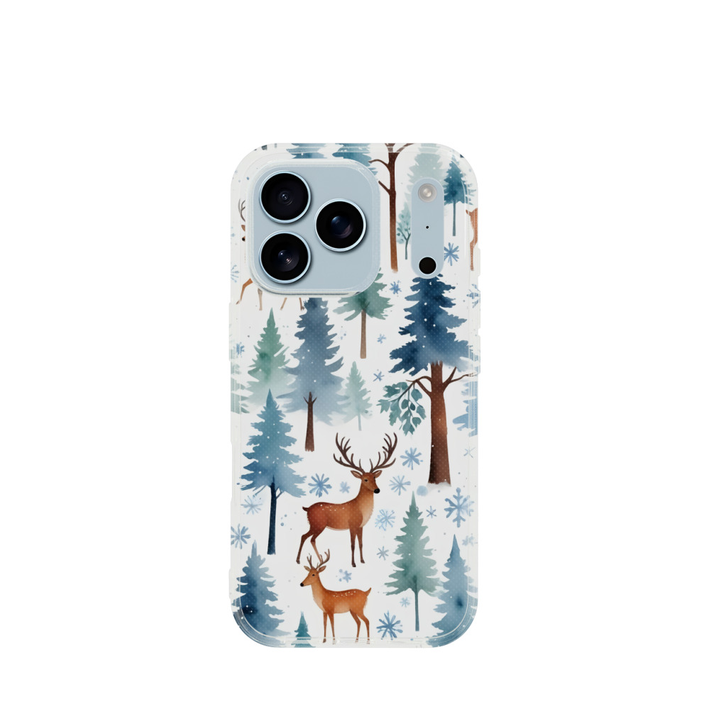 iPhone 17 Pro Gummi Hülle Schneehirsche - Blau / Gelb / Rot