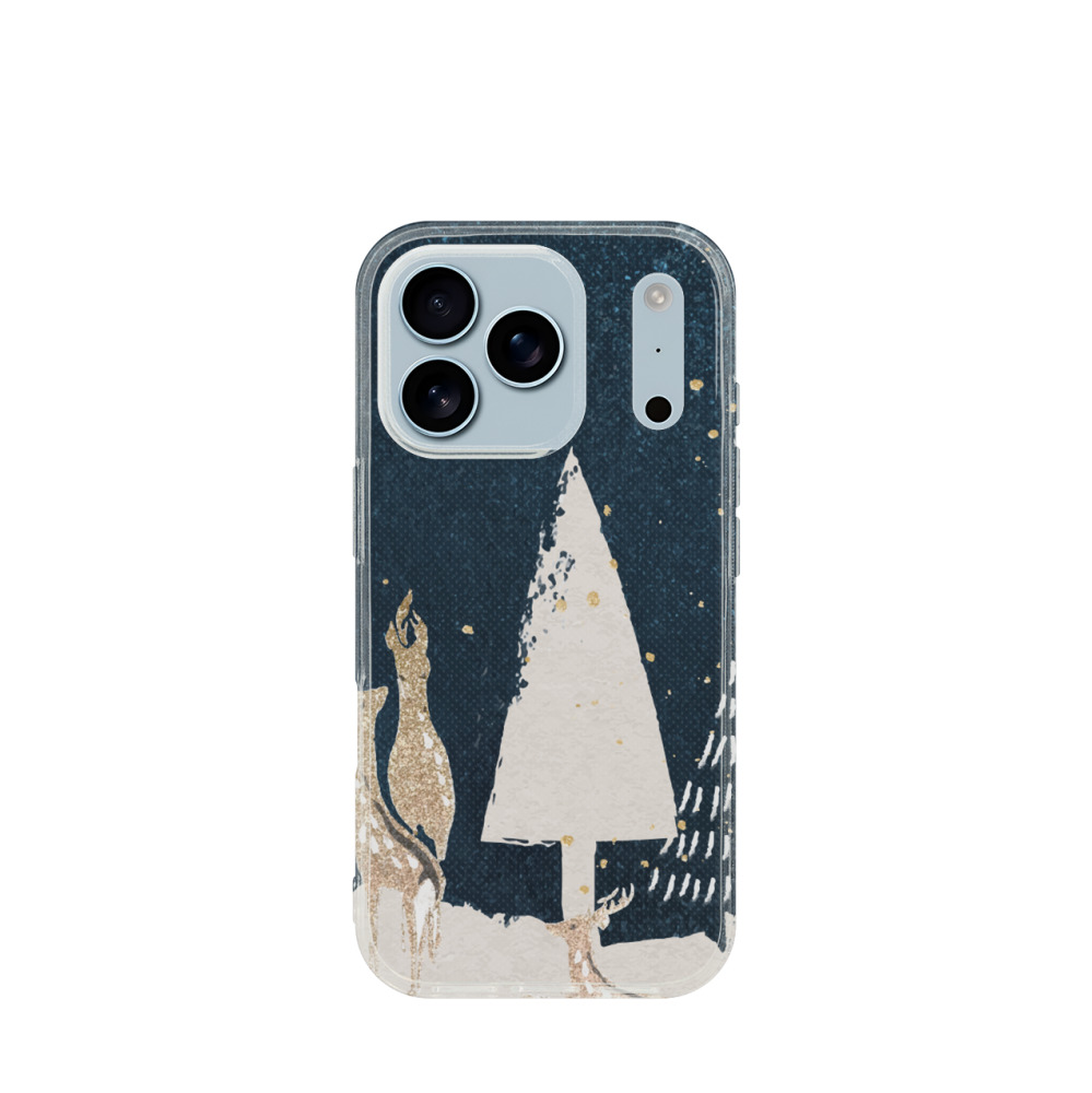 iPhone 17 Pro Gummi Hülle Winterlicher Hirsch - Blau