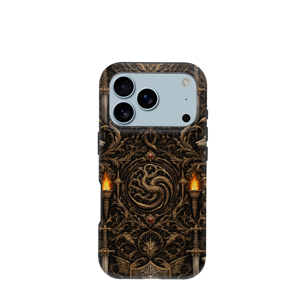 iPhone 17 Pro Hybrid (Kunststoff / Gummi) Hülle Flaming Sword - Bronze