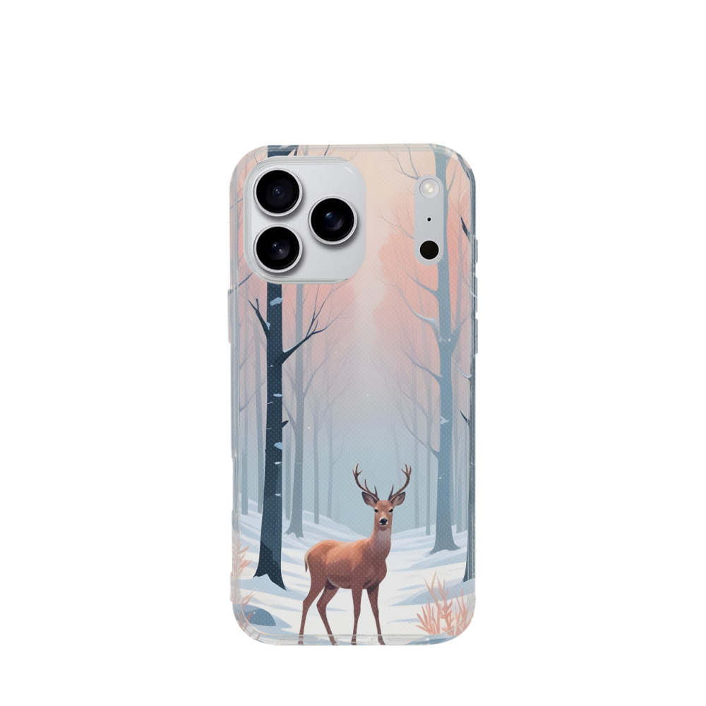 iPhone 17 Pro Max Gummi Hülle Hirsch im Morgennebel - Weiss