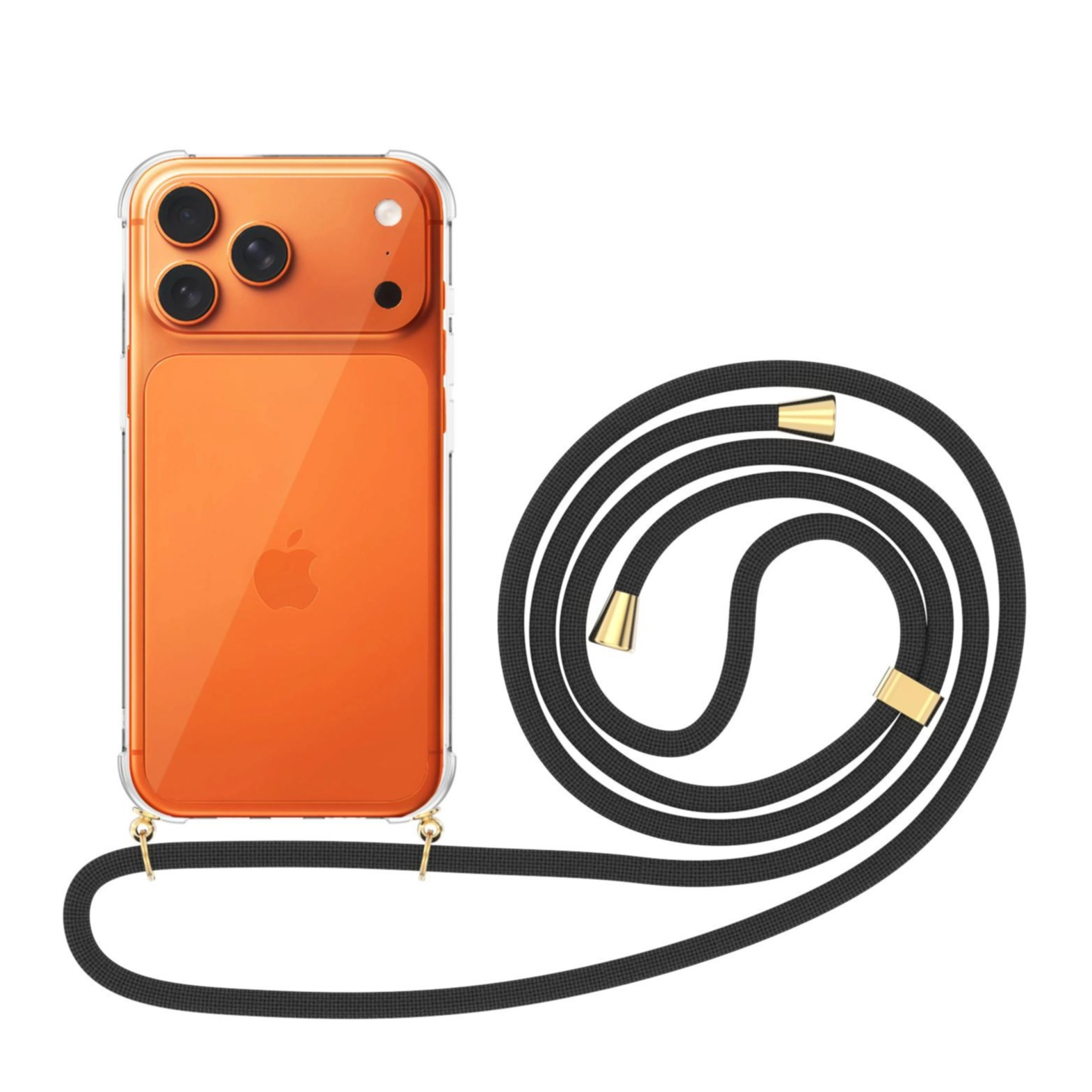 1 x Apfelkiste - iPhone 17 Pro Max Necklace Étui en caoutchouc Air Cushion Protection contre les chutes + chaîne pour téléphone portable (150cm)