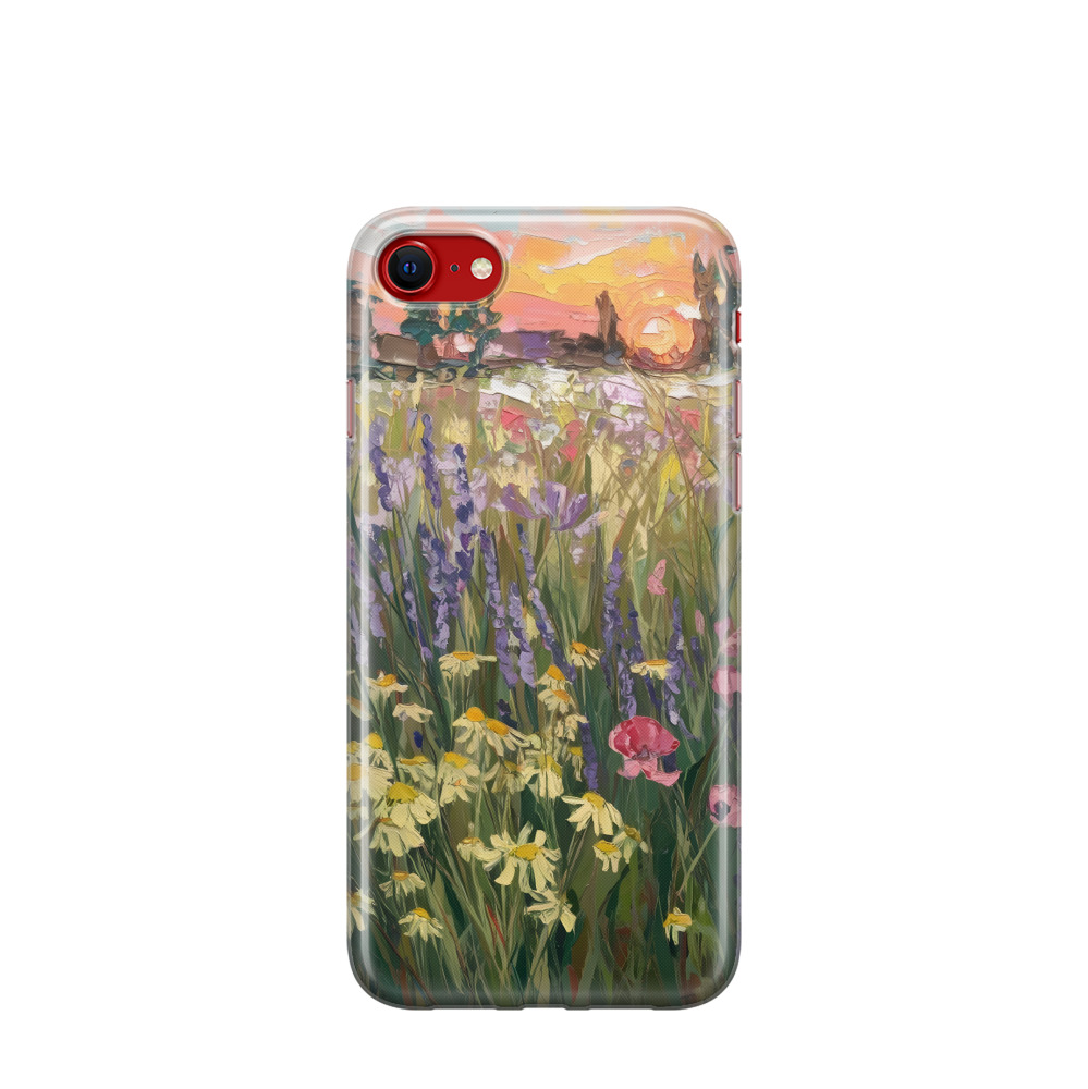 iPhone 7 Gummi Hülle Abendsonne über der Wiese - Grün