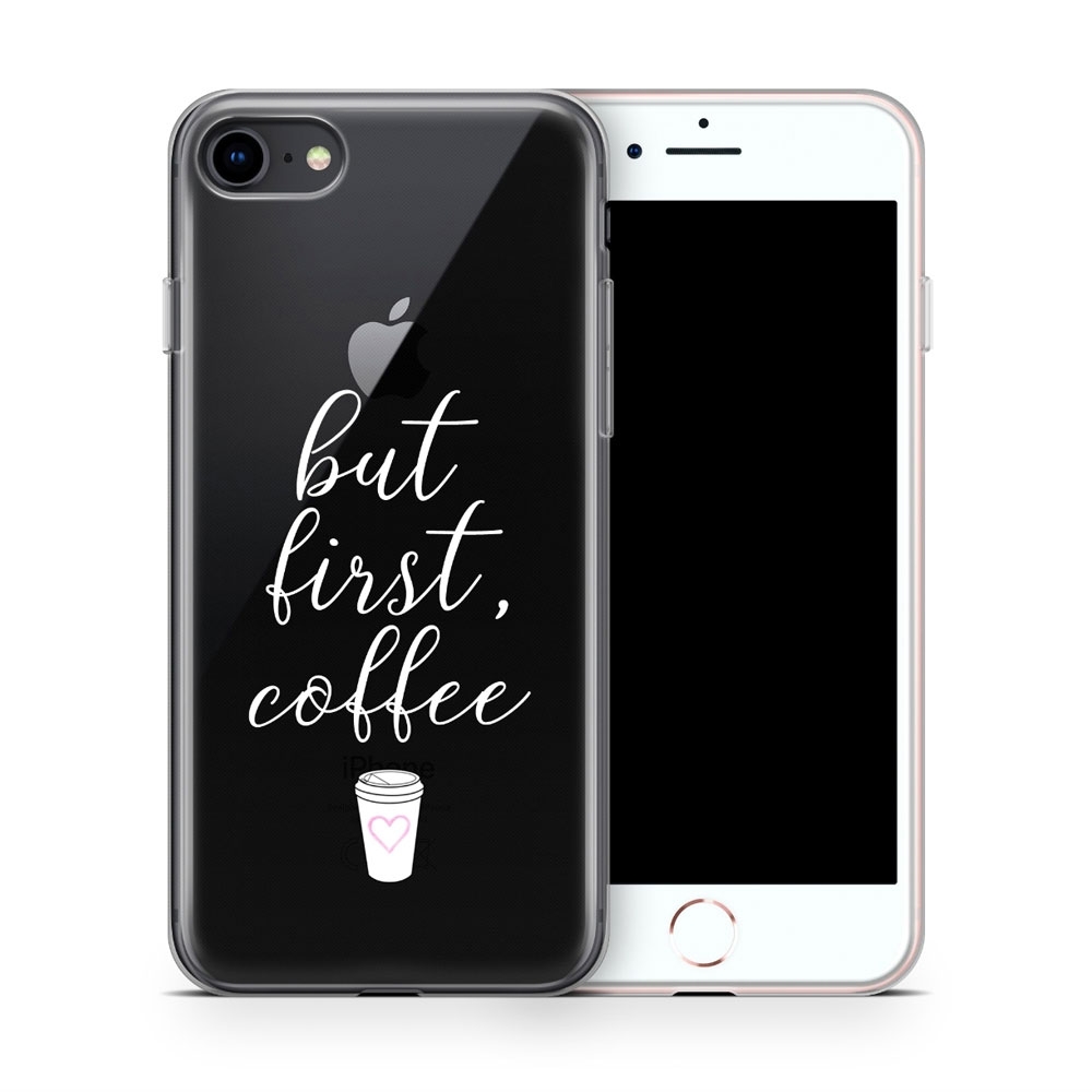 iPhone SE (2022/2020) / 8 / 7 Gummi Schutzhülle But First Coffee - Transparent