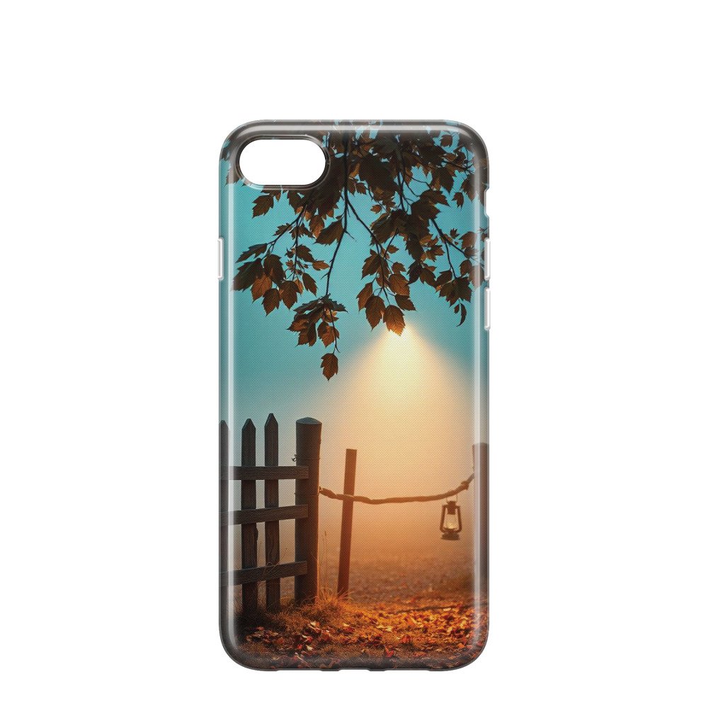 iPhone SE (2022) Coque en caoutchouc Crépuscule d'automne - Bleu / Jaune / Rouge