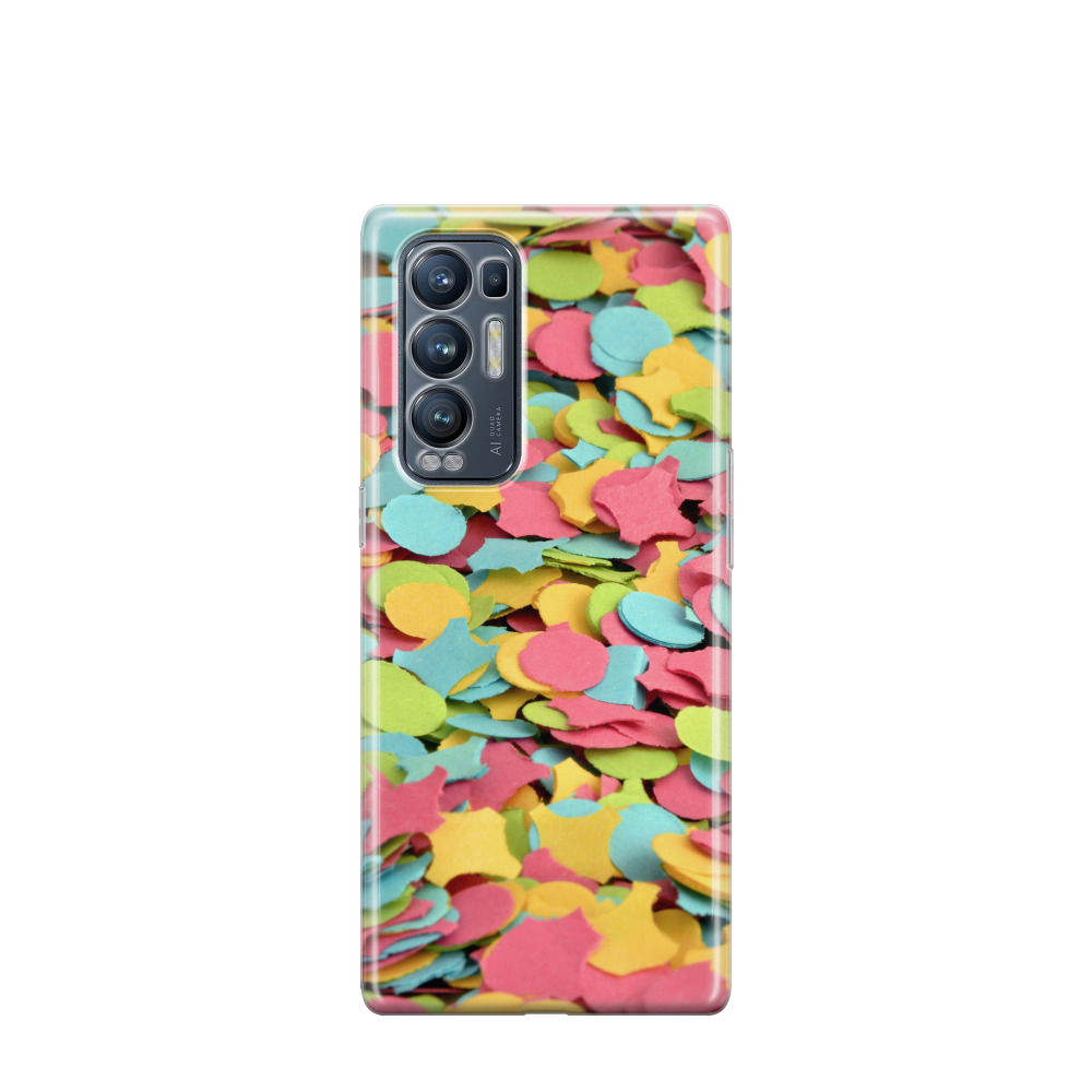 Oppo Find X3 Neo Gummi Hülle Konfettipracht - Blau / Gelb / Rot