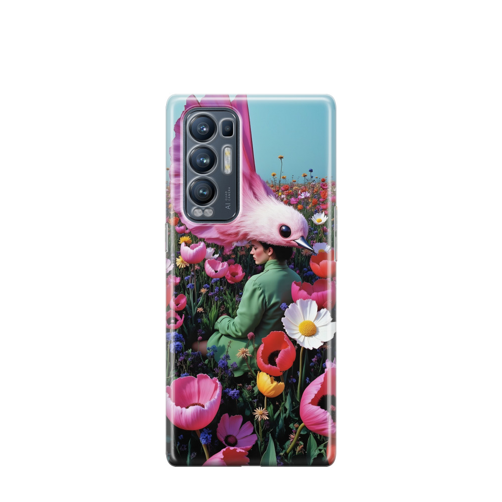 Oppo Find X3 Neo Gummi Hülle Traumvogel im Blumenmeer - Versch. Farben