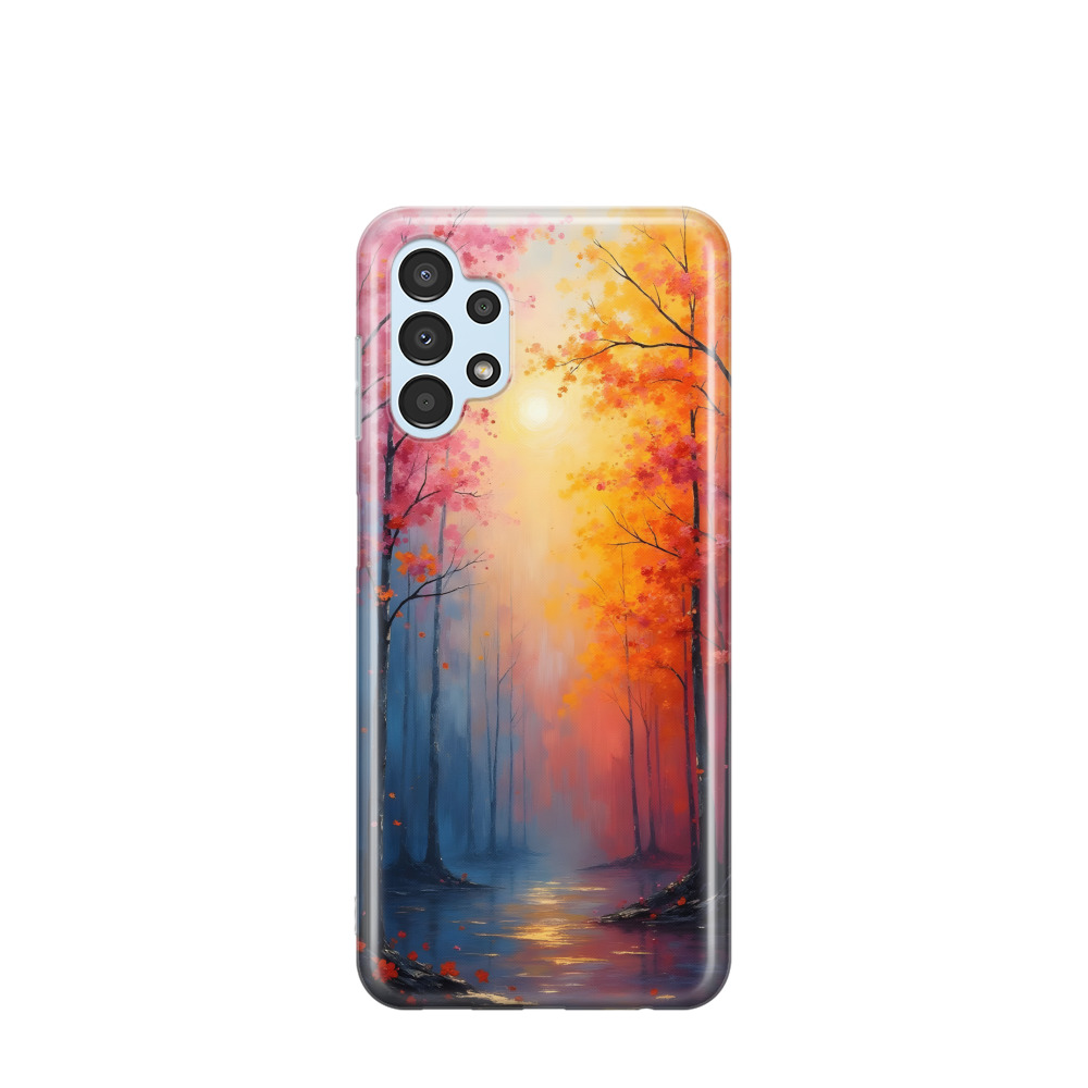 Samsung Galaxy A13 Gummi Hülle Lichterspiel im Märchenwald - Blau / Gelb / Rot