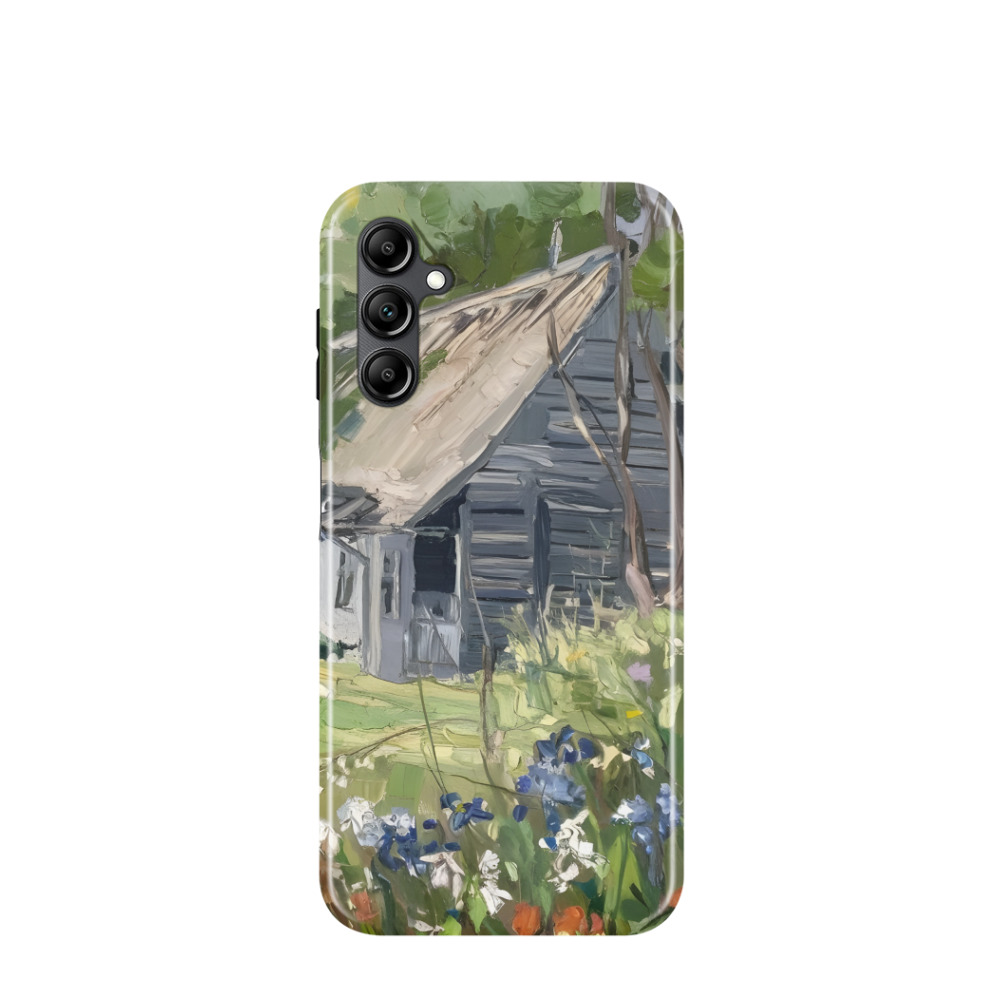 Samsung Galaxy A14 4G Hybrid (Kunststoff / Gummi) Hülle Hütte im Grünen - Grün