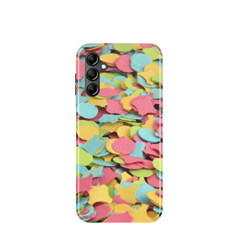 Samsung Galaxy A14 4G Hybrid (Kunststoff / Gummi) Hülle Konfettipracht - Blau / Gelb / Rot