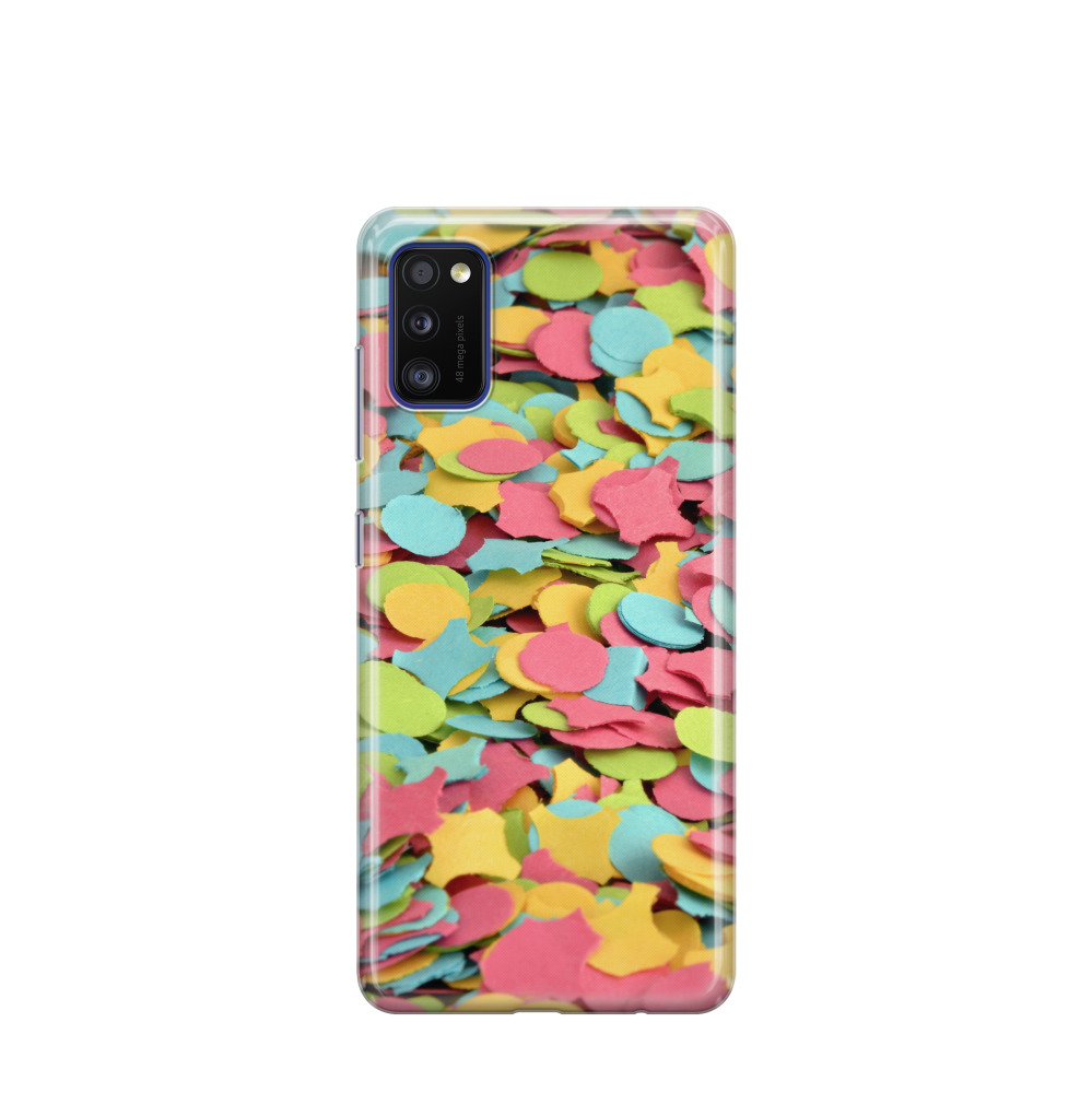 Samsung Galaxy A41 Gummi Hülle Konfettipracht - Blau / Gelb / Rot