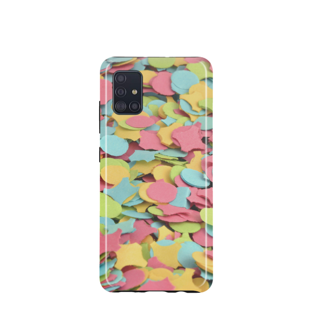 Samsung Galaxy A51 (2019) Hybrid (Kunststoff / Gummi) Hülle Konfettipracht - Blau / Gelb / Rot