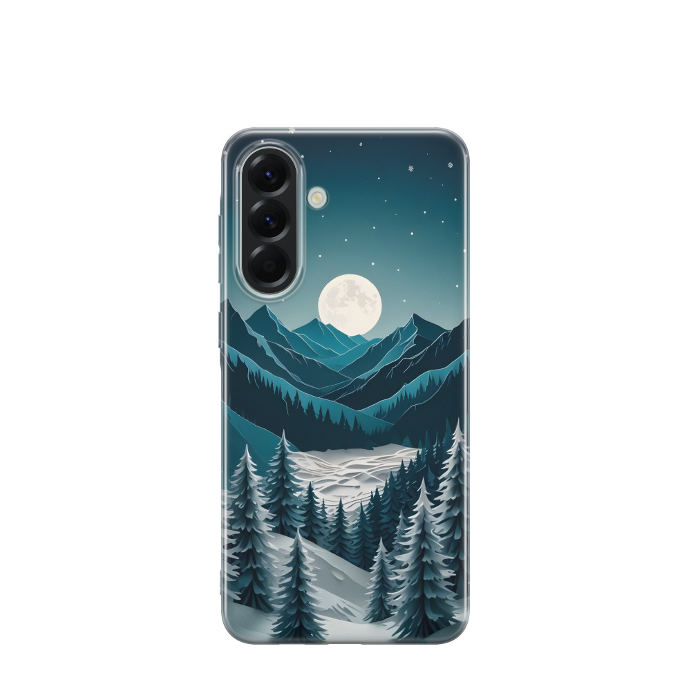 Samsung Galaxy A56 Gummi Hülle Winternacht in den Bergen - Schwarz