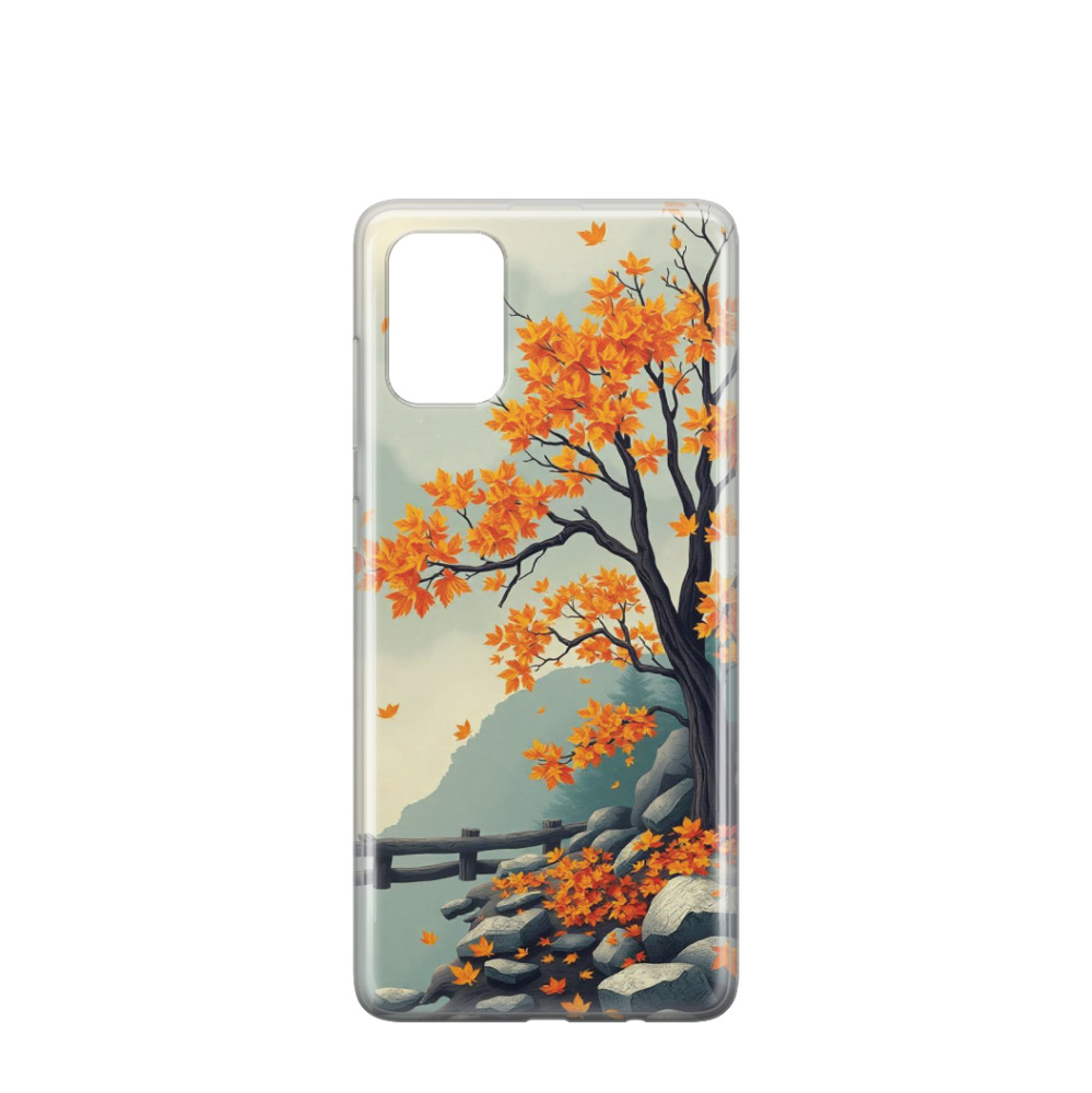 Samsung Galaxy A71 Gummi Hülle Herbstliche Felsen - Orange