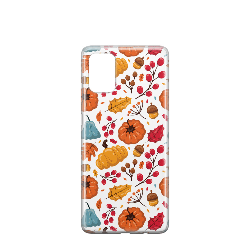 Samsung Galaxy A71 Gummi Hülle Laub und Kürbisse - Orange