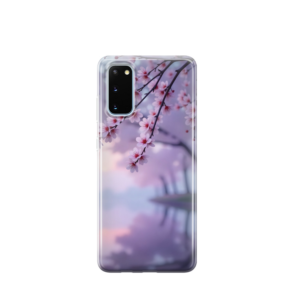 Samsung Galaxy S20 Gummi Hülle Blütentraum am Wasser - Lila-Violett