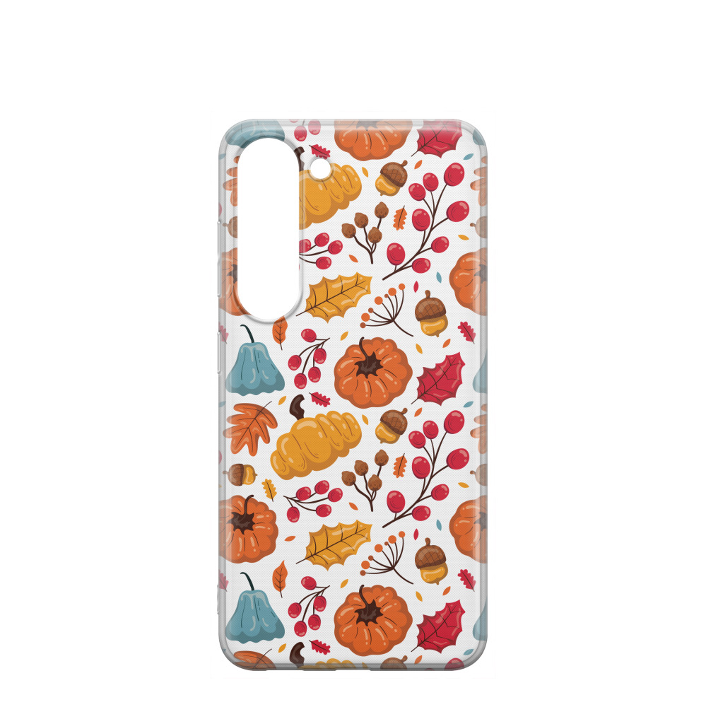 Samsung Galaxy S23 5G Gummi Hülle Laub und Kürbisse - Orange