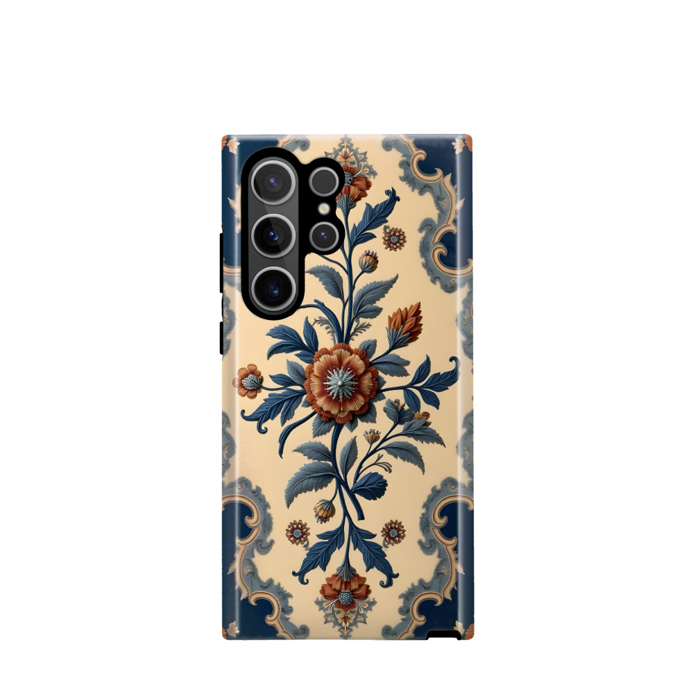 Samsung Galaxy S23 Ultra 5G Hybrid (Kunststoff / Gummi) Hülle Barocker Blütenzauber - Blau