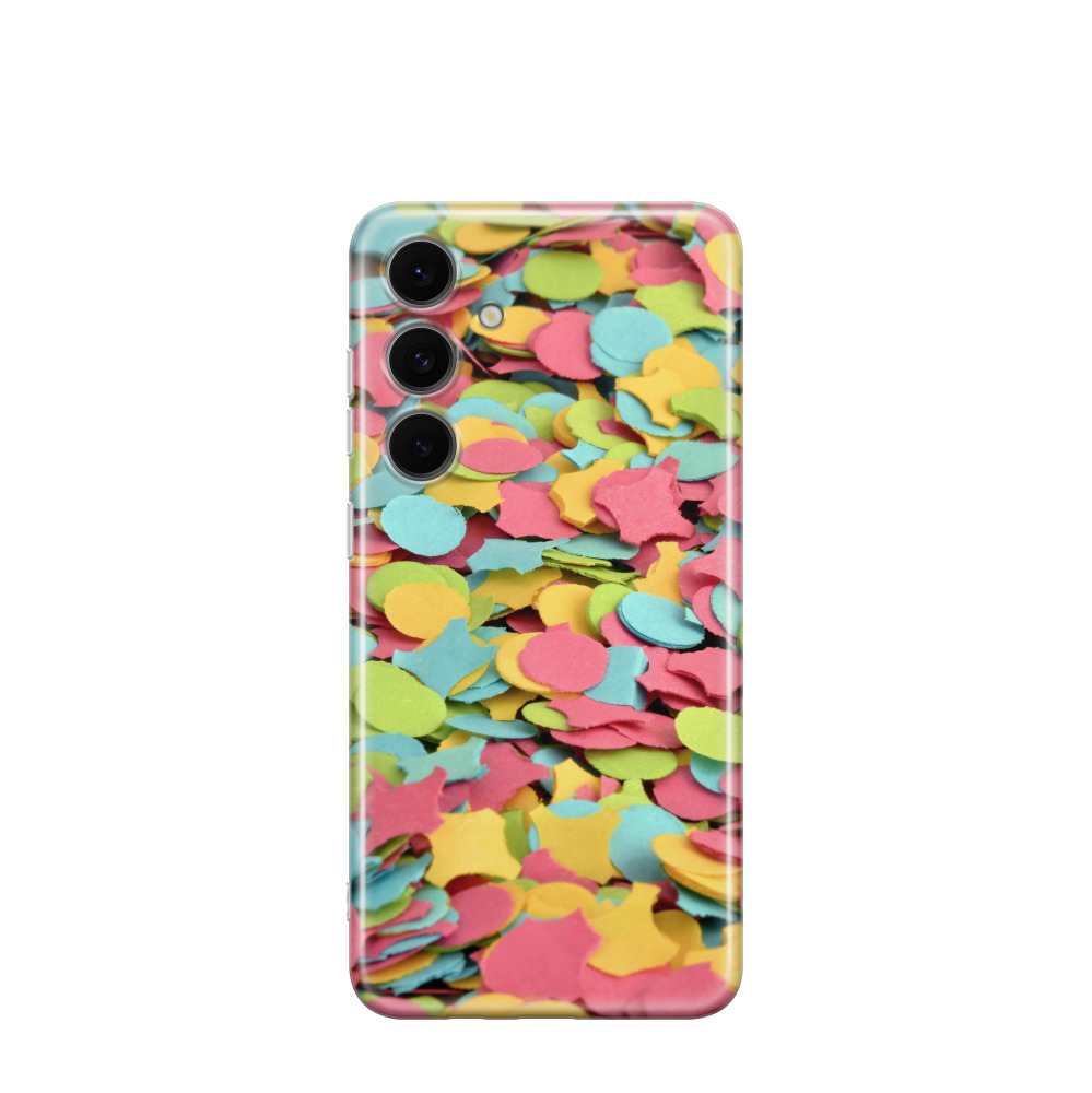 Samsung Galaxy S24 FE Gummi Hülle Konfettipracht - Blau / Gelb / Rot