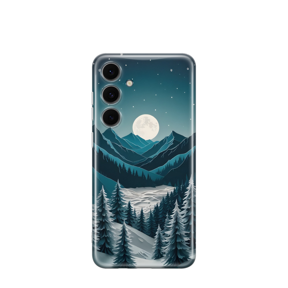 Samsung Galaxy S24 FE Gummi Hülle Winternacht in den Bergen - Schwarz