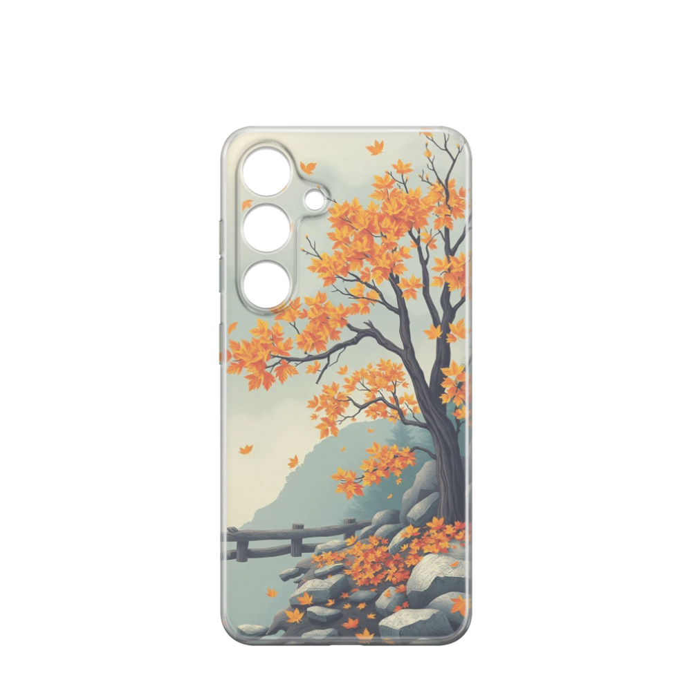 Samsung Galaxy S24 Gummi Hülle Herbstliche Felsen - Orange